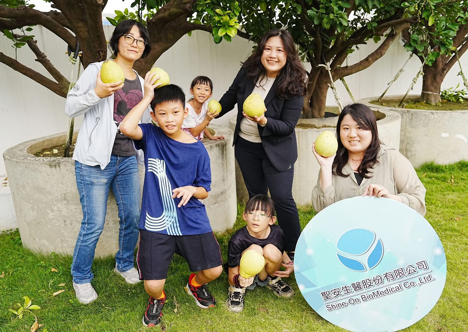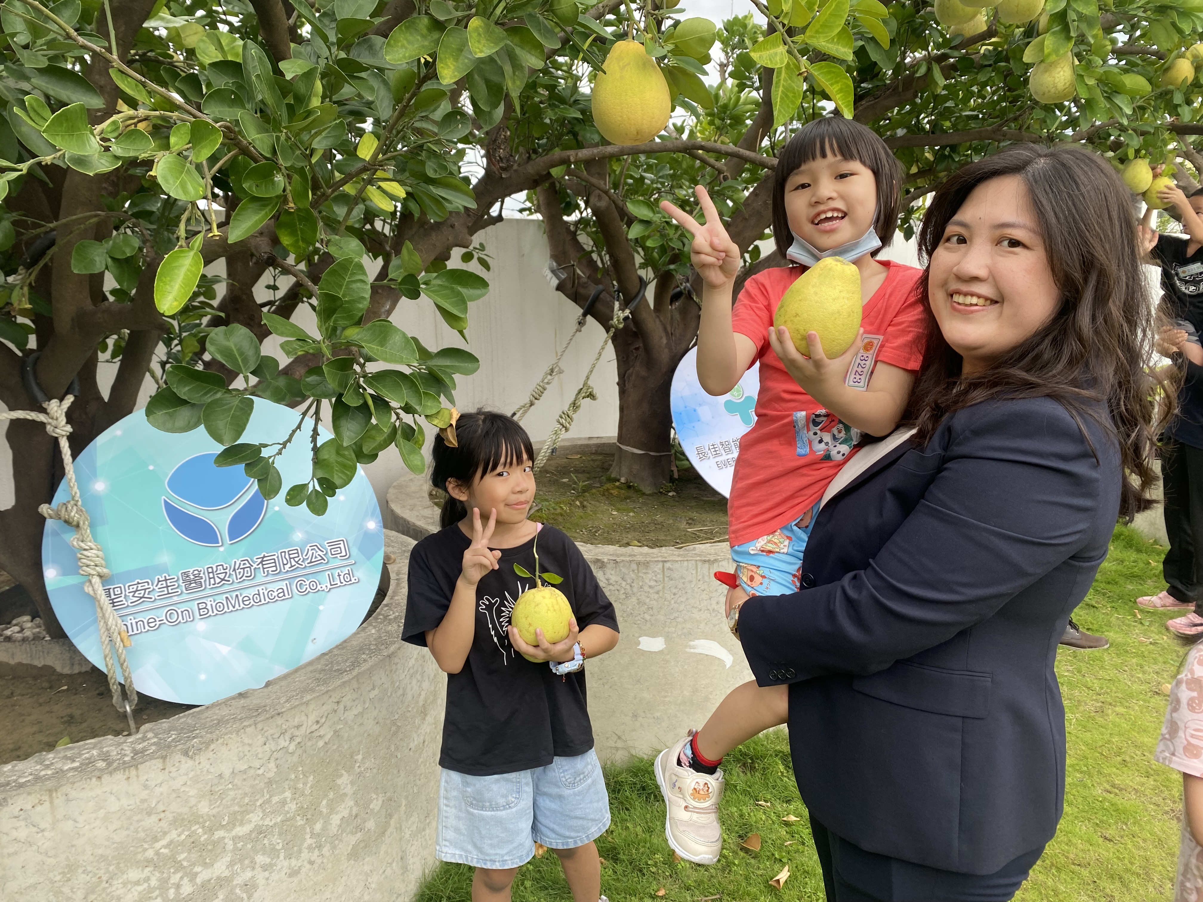 中秋將至,聖安生醫很榮幸與 中國醫藥大學附設醫院 及其他生醫企業夥伴—長聖國際生技、長佳智能,一同邀請行道會潭子教會的孩子們 走進水湳質子治療中心,提前歡度中秋佳節提前歡度中秋佳節。孩子們在果園裡親手摘下柚子,純真的笑聲迴盪在樹梢間。活動尾聲,孩子們除了帶回自己親手採下的柚子,還收到充滿祝福的小紅包與禮物臉上滿溢著幸福的笑容